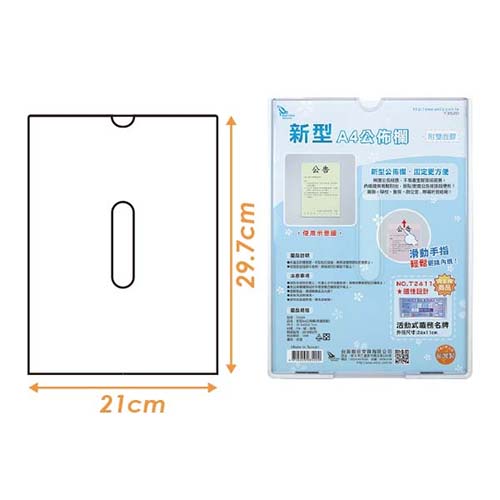 WIP台灣聯合 NO.T2232 新型A4公佈欄(直式側入) 32.6x21.8...