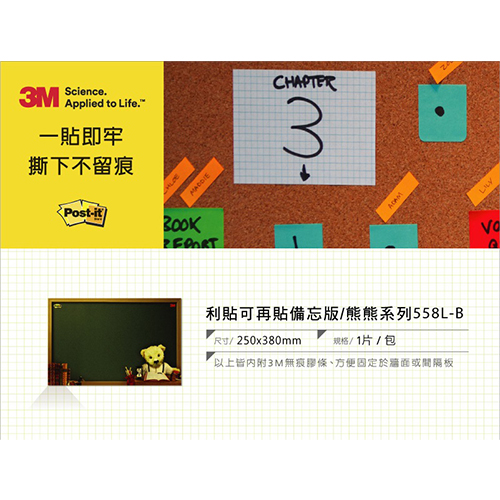 3M 思高牌 Post-it 利貼 558M-B 再貼備忘版/佈告欄 中方型熊熊系列 250×180mm