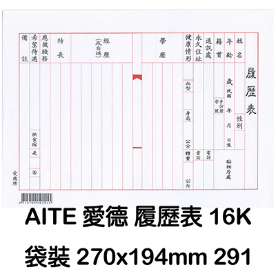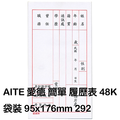 AITE 愛德牌 C-288自傳履歷表