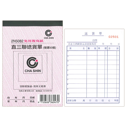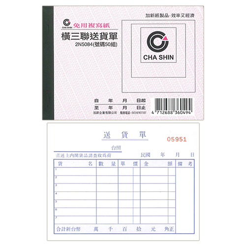 CHA SHIN 加新 2N5084 64K非碳橫三聯送貨單 (50組) 93×133mm