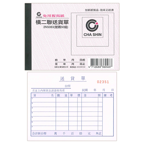 CHA SHIN 加新 2N5083 64K非碳橫二聯送貨單 (50組) 93×133mm