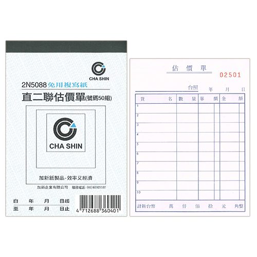 CHA SHIN 加新 2N5088 64K非碳直二聯估價單 (50組) 93×133mm