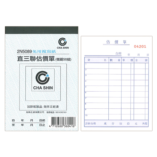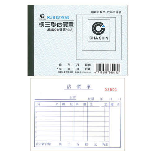 CHA SHIN 加新 2N5091 64K非碳橫三聯估價單 (50組) 93x133mm