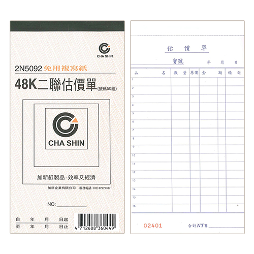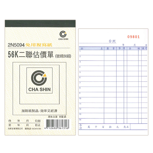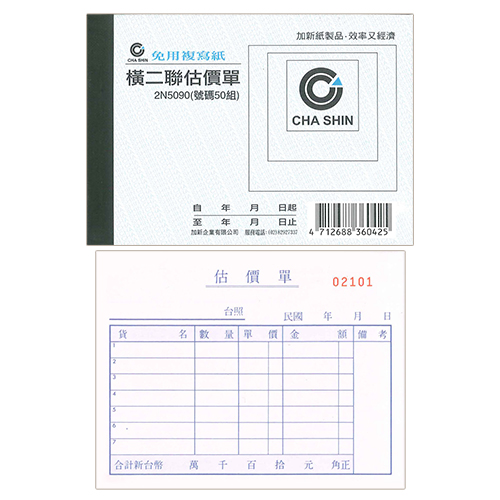 CHA SHIN 加新 2N5090 64K非碳橫二聯估價單 (50組) 93x133mm