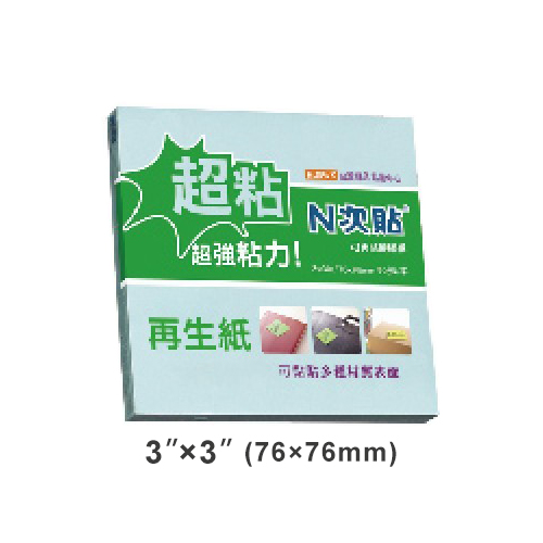 StickN N次貼 3x3 超粘再生紙可再貼便條紙/便利貼 藍 76x76mm 90張入 NO.62728