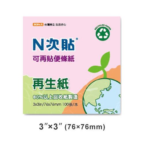 StickN N次貼 3x3 再生紙可再貼便條紙/便利貼 粉紅 76x76mm ...
