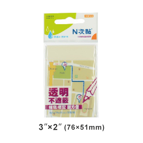 StickN N次貼 3x2 防潑水可再貼螢光透明便條紙/便利貼 白 76x51mm 50張入 NO.66540