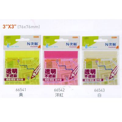 StickN N次貼 3x2 防潑水可再貼螢光透明便條紙/便利貼 黃 76x51mm 50張入 NO.66538