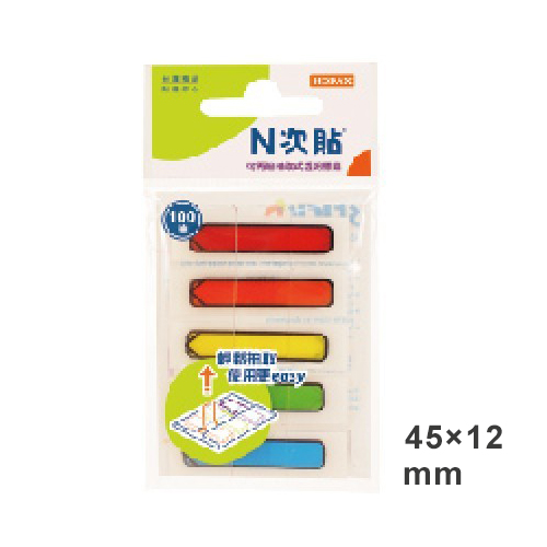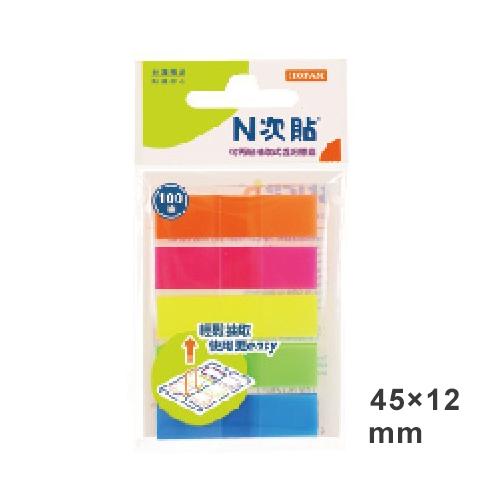 StickN N次貼 5色簡易抽取式螢光透明標籤 45x12mm 100張 NO...