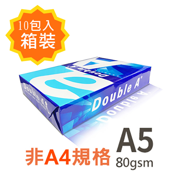 Double A A5 80gsm 雷射噴墨白色影印紙500張入 X 10包入箱裝 為A4尺寸的一半
