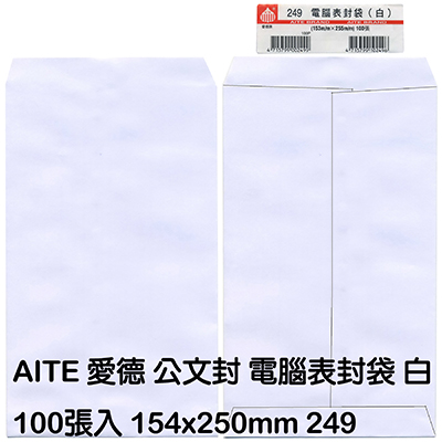 AITE 愛德牌 電腦表封袋/公文封/公文袋/信封袋/文件袋 A-249 袋裝 154x247mm 白100入