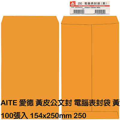 AITE 愛德牌 電腦表封袋/公文封/公文袋/信封袋/文件袋 A-250 袋裝 154x247mm 黃100入