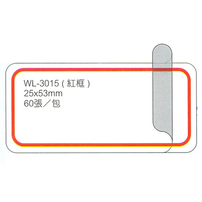 華麗牌 WL-3015 保護膜標籤 25x53mm 紅框 60張入