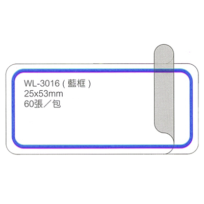 華麗牌 WL-3016 保護膜標籤 25x53mm 藍框 60張入