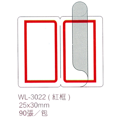 華麗牌 WL-3022 保護膜標籤/索引 25x30mm 紅框 90張入