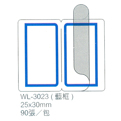 華麗牌 WL-3023 保護膜標籤/索引 25x30mm 藍框 90張入