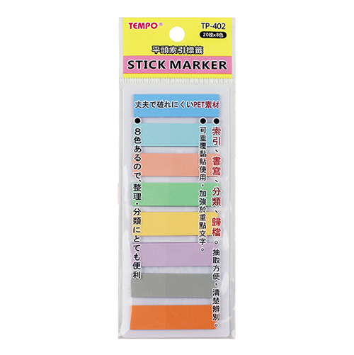 TEMPO 節奏柔色平頭八色索引標籤TP-402 44*12mm