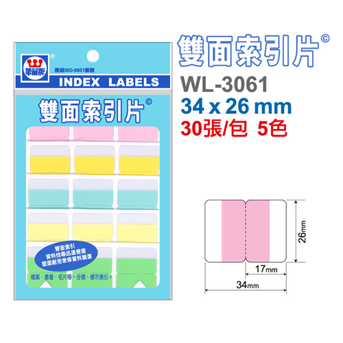 華麗牌 WL-3061 雙面索引片 中 34x26mm 30張入 5色