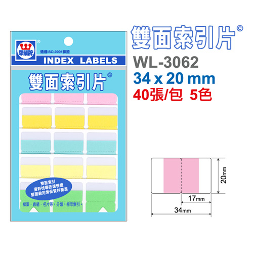 華麗牌 WL-3062 雙面索引片 小 34x20mm 40張入 5色