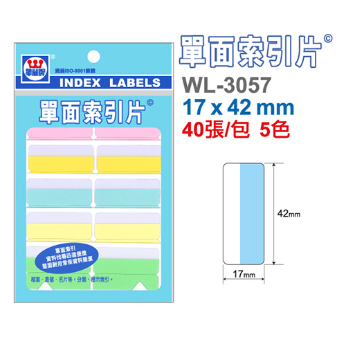 華麗牌 WL-3057 單面索引片 大 42x17mm 40張入 5色