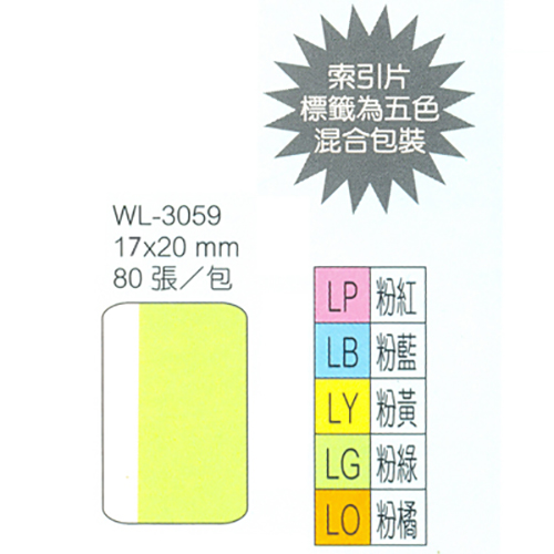 華麗牌 WL-3059 單面索引片 小 20x17mm 80張入 5色
