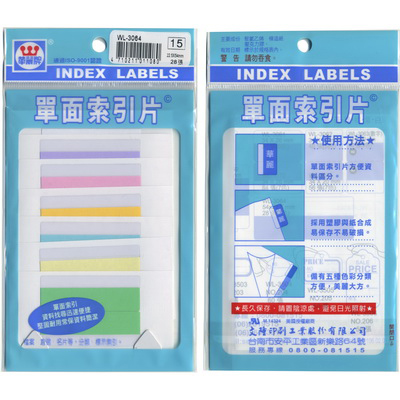 華麗牌 WL-3064 單面索引片 19x54mm 28張入 7色