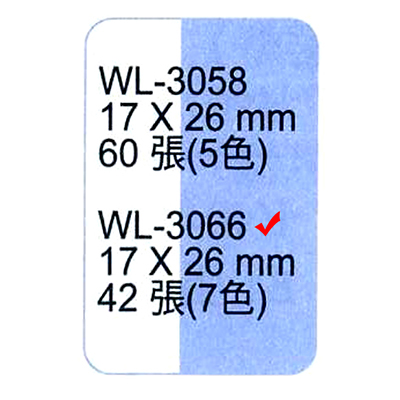 華麗牌 WL-3066 單面索引片 17×26mm 42張入 7色