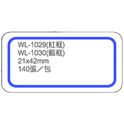 華麗牌 WL-1030 自黏性標籤 21x42mm 藍框 140張入