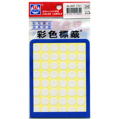 華麗牌 WL-2027W 彩色圓點標籤/圓形貼紙 白 ø12mm 672入