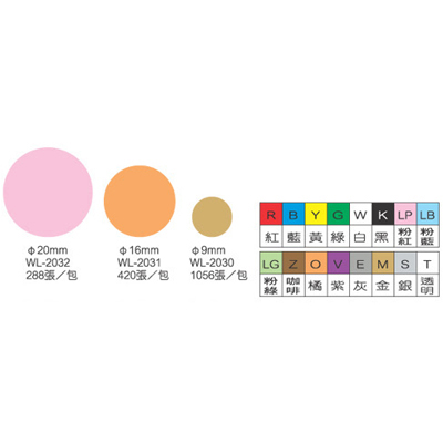 華麗牌 WL-2032 彩色圓點標籤/圓形貼紙 透明 ø20mm 288入