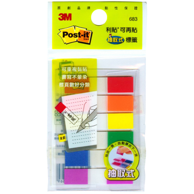 3M 思高牌 Post-it 利貼 NO.683-6C 可再貼抽取式指示標籤 六色 10x44mm