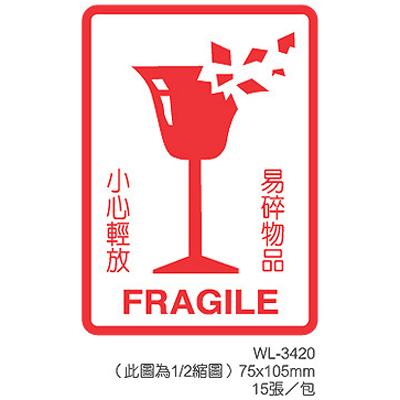 華麗牌 WL-3420 彩色易碎物品標籤/自黏性標籤 75x105mm 15張入