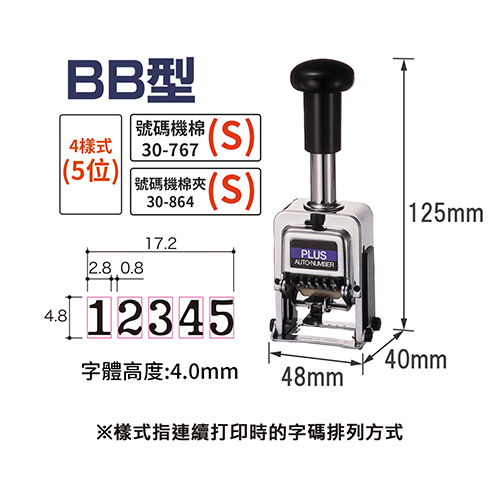 PLUS 普樂士 30-882 BB型 5位自動號碼機