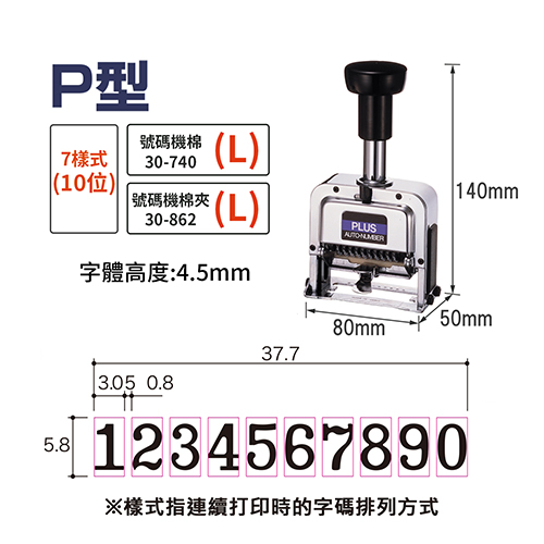 PLUS 普樂士 30-888 P型 10位自動號碼機