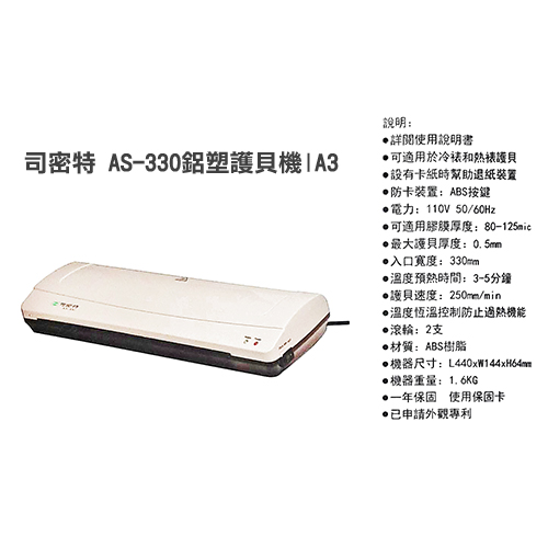 司密特 高品質護貝機 A3 後進紙式 AS-330
