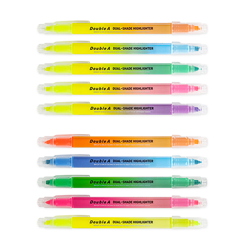 Double A 雙頭螢光筆/雙色螢光筆 5色組(螢光黃+淺五色)