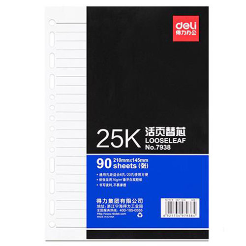 得力Deli活頁紙/7938/橫線內頁/A5/20孔/90張