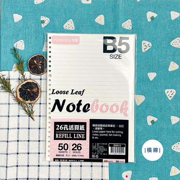 Penrote 筆樂B5-26孔活頁內紙 橫線 E0512