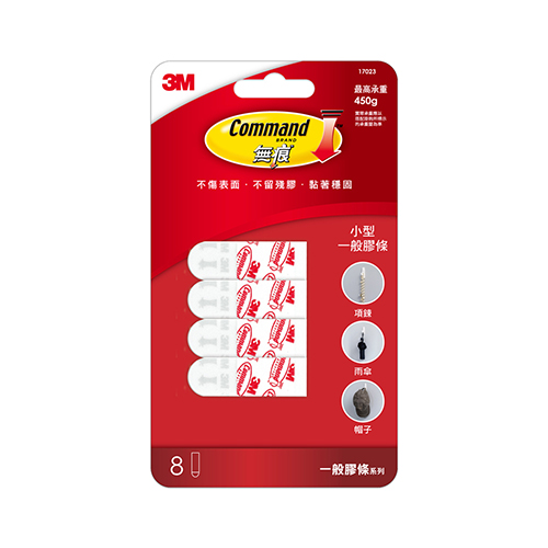 3M 思高牌 無痕 17023 小型雙面膠條/無痕掛勾膠條 8入 承重450g
