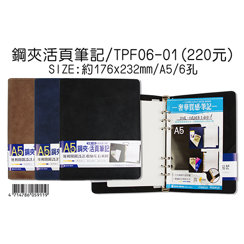 DOW DEAN 豆點A5 6孔鋼夾筆記夾TPF06-01