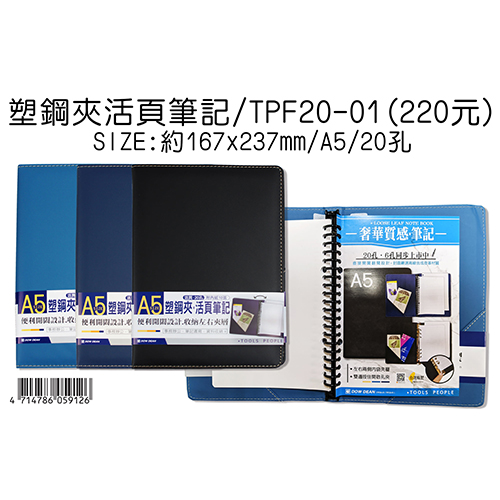 DOW DEAN 豆點A5 20孔塑鋼夾筆記夾TPF20-01