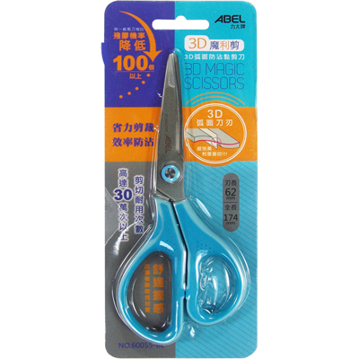 ABEL 力大牌 60055BL 藍 3D魔利剪 弧面防沾黏剪刀 7吋