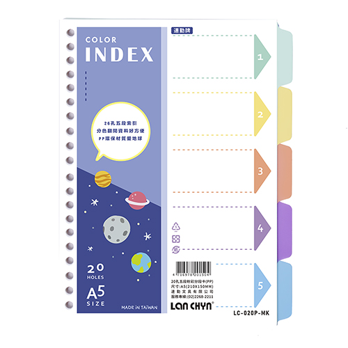 LAN CHYN 連勤 LC-020P-MK A5 20孔5段5色分段隔頁紙 PP材質