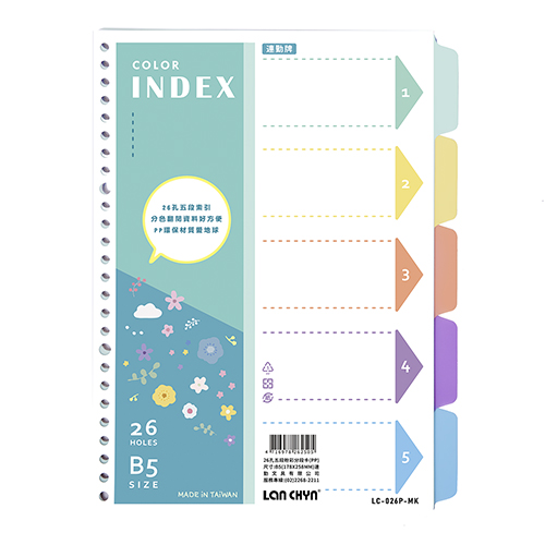 LAN CHYN 連勤 LC-026P-MK B5 26孔5段5色分段隔頁紙 PP材質