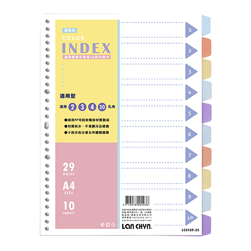 LAN CHYN 連勤 LC-010P-29 A4 29孔10段5色分段隔頁紙 PP材質