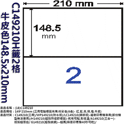 Herwood 鶴屋牌 2格 148.5x210mm NO.C149210 A4雷射噴墨影印自黏標籤貼紙/電腦標籤 20大張入