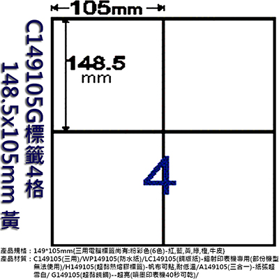 Herwood 鶴屋牌 4格 148.5x105mm NO.C149105G 粉黃 A4雷射噴墨影印自黏標籤貼紙/電腦標籤 15大張入