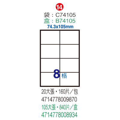 Herwood 鶴屋牌 8格 74.3x105mm NO.B74105 A4彩色雷射噴墨影印自黏標籤貼紙/電腦標籤 100大張入