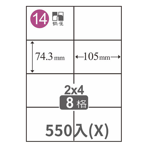 Herwood 鶴屋牌 8格 74.3x105mm NO.B74105H(X) 牛皮 A4雷射噴墨影印自黏標籤貼紙/電腦標籤 550大張入