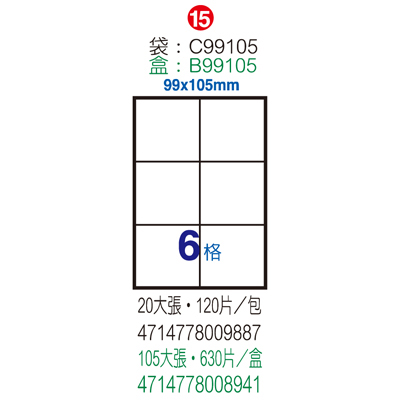 Herwood 鶴屋牌 6格 99x105mm NO.B99105 A4雷射噴...